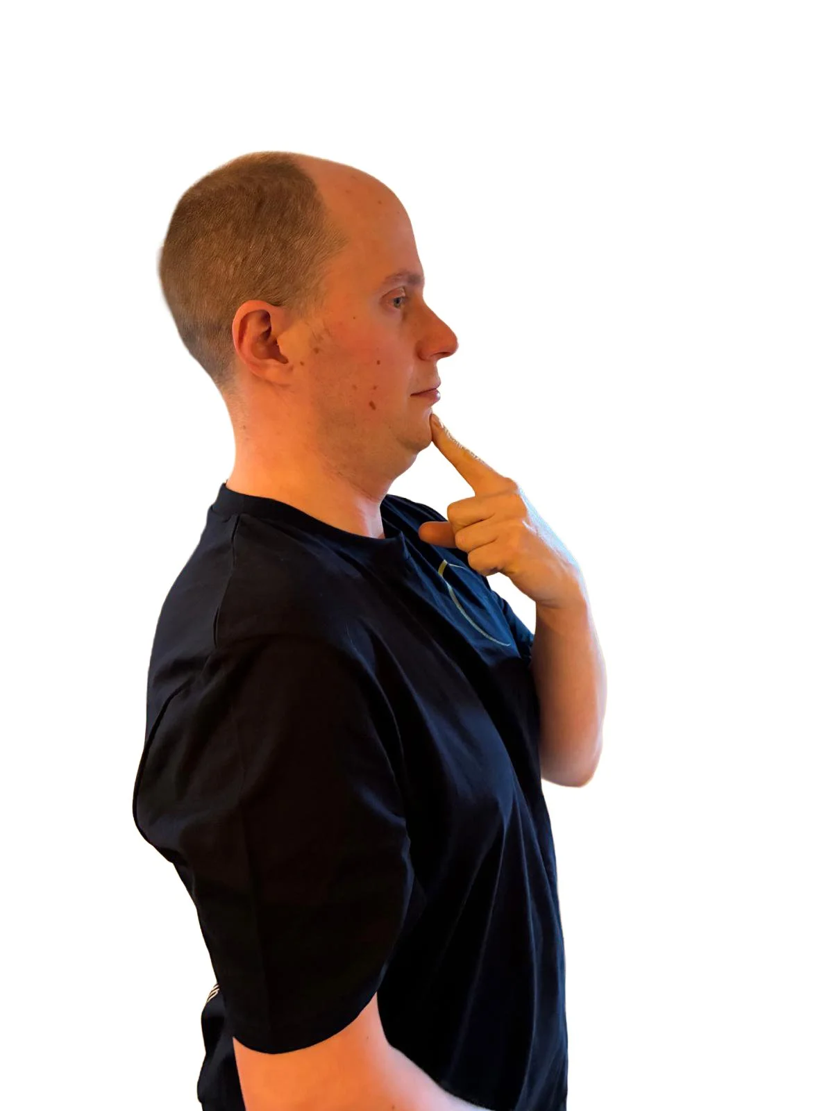 The suboccipital muscles are small muscles at the top of the neck, very often involved in headaches. They are small and delicate, so it’s important to start slowly. Place your index finger on your chin (apply no pressure), then stick your chin in keeping contact with your finger as far as is comfortable or until you feel a tension/stretch sensation in your upper neck. If you feel pain, stop just before that point. Then push your chin out against your finger as far as is comfortable, again, if you feel pain, stop just before that point. Repeat 3-4 times, start doing twice daily if you feel no pain or discomfort after a couple of days of doing that, then gradually increase repetitions 1-2 a day until you reach 15.